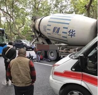 昨日上午12點(diǎn),在南山路錢王祠路口發(fā)生一起車禍,一輛電瓶車被混凝土攪拌車撞倒。