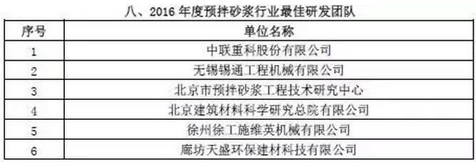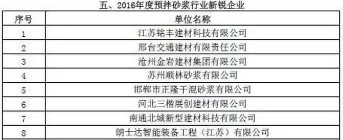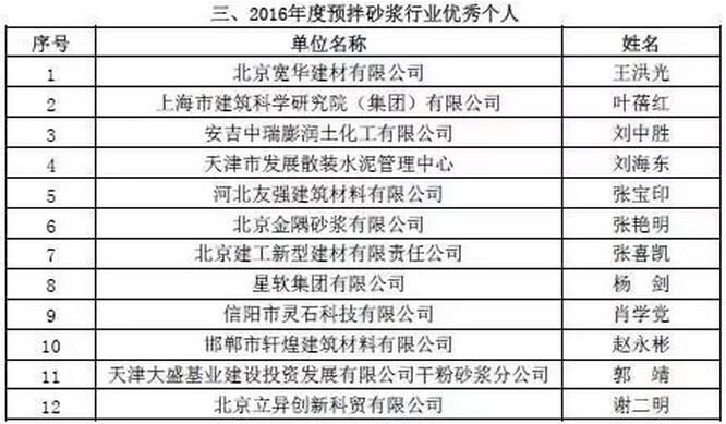 附:2016年度預(yù)拌砂漿行業(yè)表彰評比名單