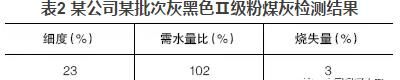 混凝土公司大多數(shù)使用的粉煤灰顏色與水泥相近,多呈灰色;也有部分粉煤灰顏色較深呈灰黑色,這種粉煤灰一般細(xì)度較細(xì)或含碳量較高。但總會(huì)發(fā)現(xiàn)一些深顏色的粉煤灰檢測結(jié)果與常理不符,如某公司某批次灰黑色Ⅱ級粉煤灰檢測結(jié)果見表2。