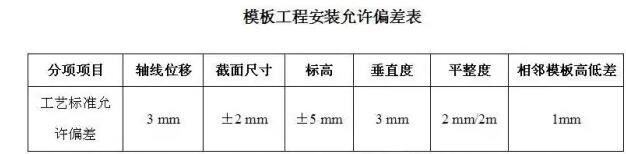 模板要求內(nèi)平面平整,接縫嚴(yán)密,防止漏漿,模板安裝的允許偏差詳見下表: