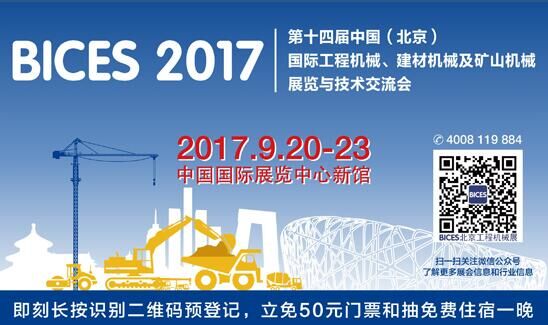 有一個多月的時間,第十四屆中國(北京)國際工程機械、建材機械及礦山機械展覽與技術(shù)交流會(以下簡稱“BICES 2017”) 就將在北京中國國際展覽中心新館鳴鑼開展!一別兩年,今年的BICES又將帶來哪些新體驗呢?