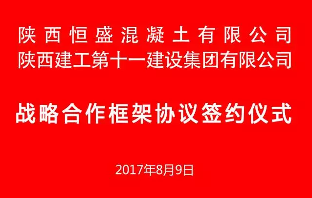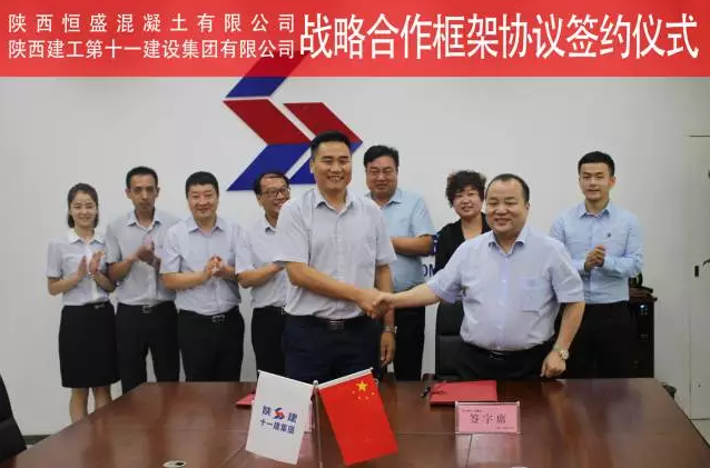 8月9日,陜西恒盛混凝土有限公司與陜西建工第十一建設(shè)集團(tuán)有限公司戰(zhàn)略合作框架協(xié)議簽約儀式在陜建十一建集團(tuán)西安總部隆重舉行。陜西恒盛集團(tuán)董事長(zhǎng)王武鎖,陜西建工第十一建設(shè)集團(tuán)有限公司總經(jīng)理馮宏斌出席儀式代表雙方簽約。