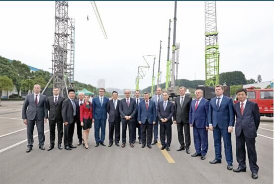 9月28日,由白俄羅斯莫吉廖夫州執(zhí)行委員會主席多馬涅夫斯基、白俄羅斯經(jīng)濟部部長季諾夫斯基、白俄羅斯駐華大使魯?shù)陆M成的代表團抵湘訪問。當天下午,代表團一行來到中聯(lián)重科麓谷工業(yè)園進行參觀,中聯(lián)重科董事長詹純新熱情接待了代表團。