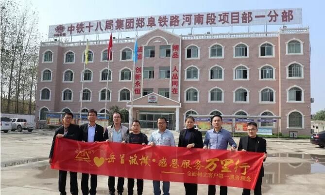 2017年10月27至29日,岳首筑機副總經(jīng)理兼售后服務(wù)部部長李華率領(lǐng)企業(yè)技術(shù)、市場、銷售部門等組成的回訪團隊抵達河南省項城市中鐵十八局集團鄭阜鐵路河南段項目部,開展2017第三屆“感恩服務(wù)萬里行”攪拌站操作專題培訓。