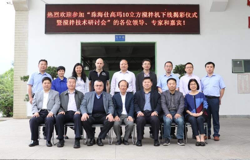 2018年4月18日,珠海仕高瑪公司10立方攪拌機(jī)下線揭彩儀式暨攪拌技術(shù)研討會在珠海仕高瑪公司舉行,中國工程機(jī)械協(xié)會混凝土機(jī)械分會符忠軒會長、長安大學(xué)馮忠緒教授、趙利軍博士、廣東長大公路工程公司楊東來總工程師、河南萬里路橋李冠峰總工程師、許昌德通特種混凝土公司孟超總經(jīng)理等領(lǐng)導(dǎo)、專家和嘉賓應(yīng)邀出席儀式和研討會,珠海仕高瑪公司股東黃志輝先生、意大利SICOMA公司董事長Mr. Galletti、總工程師Marco、珠海仕高瑪公司總經(jīng)理郗俊峰先生、財務(wù)總監(jiān)唐志敏女士及公司技術(shù)研發(fā)團(tuán)隊、生產(chǎn)團(tuán)隊、銷售團(tuán)隊、售后團(tuán)隊參加本次活動。
