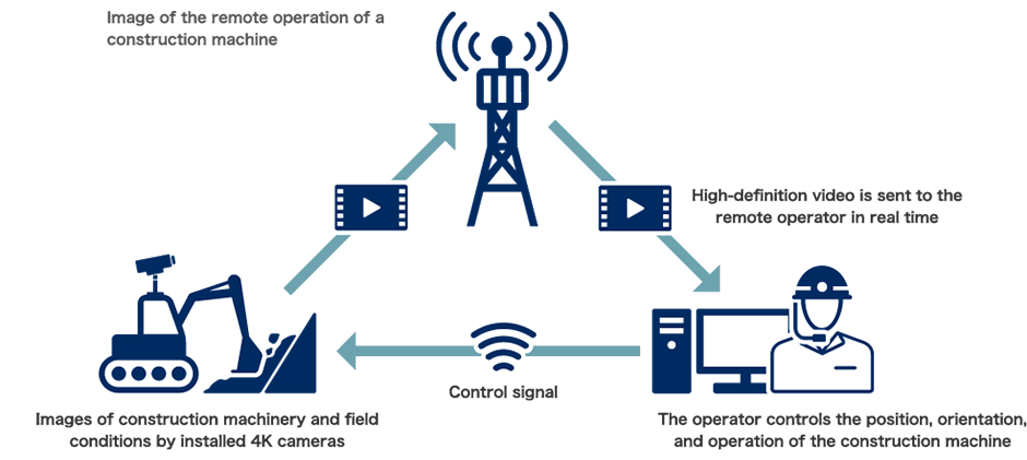 株式會(huì)社小松制作所(KOMATSU)正與電訊商NTT DoCoMo聯(lián)合開(kāi)發(fā)使用“5G”通訊技術(shù),未來(lái)可實(shí)現(xiàn)遠(yuǎn)程操控工程機(jī)械施工。2018年的世界移動(dòng)大會(huì)·上海(簡(jiǎn)稱“MWC上海”),一個(gè)與遠(yuǎn)在石家莊的挖掘機(jī)相連的駕駛室吸引了人們的眼球,真實(shí)呈現(xiàn)了了5G技術(shù)“物物相連”的場(chǎng)景。在2018世界智能制造大會(huì)上,“現(xiàn)代挖掘機(jī)駕駛室長(zhǎng)途操控臺(tái)”可通過(guò)顯示屏實(shí)時(shí)操控遠(yuǎn)在河北工地的挖掘機(jī)。據(jù)了解,兩臺(tái)設(shè)備皆是河北小松在當(dāng)?shù)厥┕がF(xiàn)場(chǎng)的智能挖掘機(jī),基于5G信號(hào)的高寬帶、低時(shí)延性能完成實(shí)時(shí)傳輸。