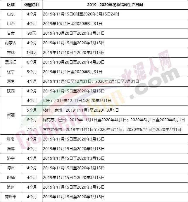 回顧2019年水泥企業(yè)錯(cuò)峰生產(chǎn)時(shí)間如下:
