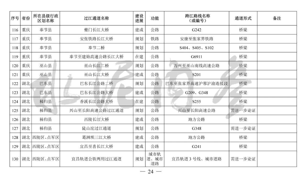 ??四、本《規(guī)劃》主要布局橫跨長江干線主要航道、具有交通功能的過江通道項目,對于連接洲島與沿岸、洲島之間的通道項目和不具備交通功能的跨江、沿江建筑物,由省級發(fā)展改革委統(tǒng)籌布局編制相關(guān)規(guī)劃報送我委銜接后組織實施。