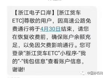 近日,很多浙江ETC用戶收到同樣一條短信,短信的內容大致是:因高速公路免費通行將于4月30日結束,請大家保持賬戶余額充足。