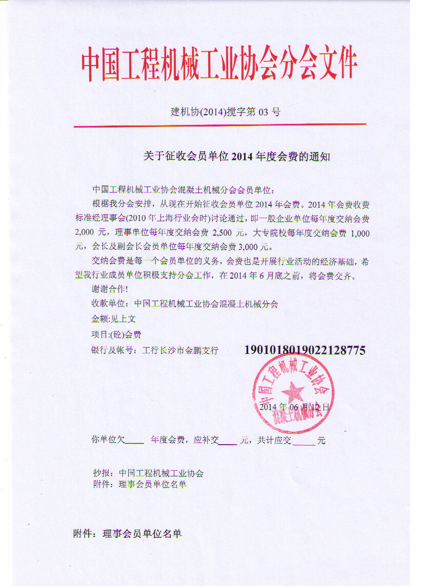關于征收會員單位2014年度會費的通知