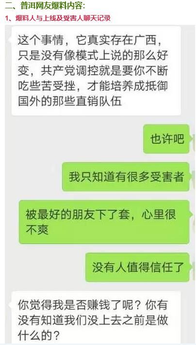 網(wǎng)友爆料稱:"1040陽(yáng)光工程"打著“國(guó)家項(xiàng)目工程“、”資本運(yùn)行“的旗號(hào)在普洱大量蔓延,已有很多人上當(dāng)受騙,自己也為受害者之一,自家共被騙10多萬(wàn)元,今天想曝光該事件,少些人上當(dāng)受騙。