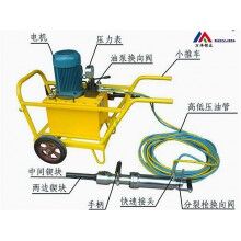 公路、鐵路修建遇巖石、城市、村寨需開挖房基遇巖石等狀況,石方很大的情況下,每個工作點可選用如下設(shè)備:鑿巖機3~4臺(配空壓機),液壓分裂機一臺(配2~3把劈裂頭),挖掘機一臺(配破碎錘)。具體操作如下:先將巖石上的泥土清理干凈,而根據(jù)巖石的紋理,在巖石上用鑿巖機鉆一組孔,每組孔以配劈裂頭的數(shù)量而定,孔距可根據(jù)不同巖石而定,一般在80cm~120cm左右,鉆好一組孔后立即將這組孔的巖石劈裂開,看劈裂的情況以便確定下一組孔的位置及方向。液壓分裂機有一個很重要的特性就是所劈裂體的劈裂位置要處于在兩邊對等相抗的位置上,不能一邊太薄而走漂。這樣劈裂的效果就不太明顯。一般情況下,所打的孔臨空面1米至1.5米就可以。劈裂深度亦視巖石的狀況而定,整體性越好劈裂深度就越深,可達(dá)2~3米。因液壓分裂機只能把巖石劈裂而不能將劈裂的石塊移出,而挖掘機的破碎錘又很難將山體上的巖石破碎,但液壓分裂機劈裂開的石塊又能輕而易舉將其移出,再將大塊的巖石破碎,易于裝卸。所以液壓分裂機與破碎錘配合使用既安全、效率又高。