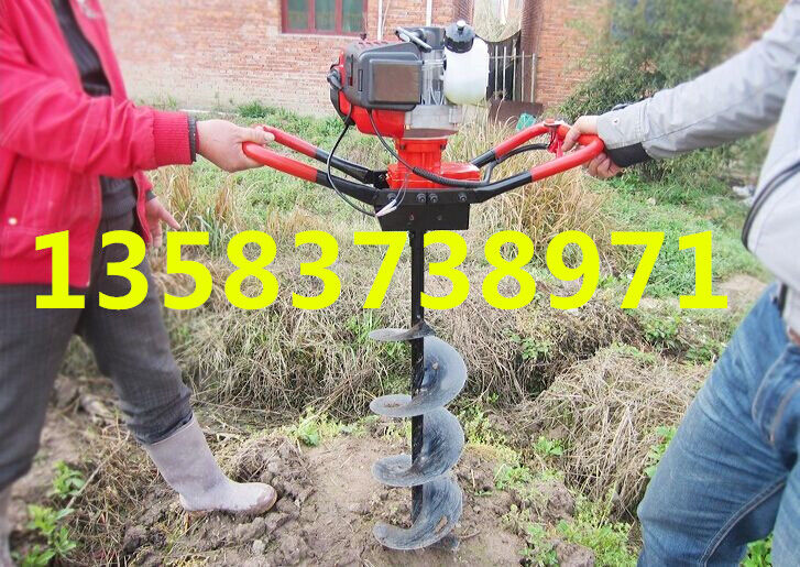 地鉆由小型通用汽油機(jī),齒輪箱及特殊設(shè)計(jì)的鉆具組成.適合在土地,凍土,冰層上打孔.廣泛用于園林,種植,植樹,物探,道路建設(shè)等領(lǐng)域  2.鉆頭采用錳鋼合成更加的堅(jiān)硬。對(duì)硬土質(zhì),超硬土質(zhì),粘土,凍土等都能工作。   3.地鉆可根據(jù)樹種,選配多種規(guī)格的鉆頭,以滿足用戶需要。 4.地鉆能夠讓人們從繁重的體力勞動(dòng)解放出來,廣泛應(yīng)用于植樹造林,栽種果林、籬笆、及秋季給果樹施肥等。適合各種地形,效率高,便于攜帶及野外田地作業(yè)。   5.地鉆既可以單人操作,又可雙人操作,經(jīng)濟(jì)實(shí)用。   注意事項(xiàng):1.使用正品2T(二沖程)FC級(jí)機(jī)油,嚴(yán)禁使用4T(四沖程)機(jī)油。   2.嚴(yán)禁使用純汽油。   3.嚴(yán)格按251的比例兌油. 4.新機(jī)器不可高速使用,請(qǐng)低速磨合3小時(shí)。   5.嚴(yán)禁在高速的時(shí)候突然關(guān)停發(fā)動(dòng)機(jī),否則會(huì)使下次開機(jī)啟動(dòng)困難。   6.感覺機(jī)器震動(dòng)異常,請(qǐng)立即停機(jī)檢查,是否破損,松動(dòng),偏心。   7.嚴(yán)禁在有亂石堆的草地上使用。   8.鉆頭有嚴(yán)格的尺寸限制,嚴(yán)禁私自改裝或使用增大號(hào)鉆頭. 9.每工作一段時(shí)間清除火花塞、消音器積碳,清洗空氣濾清器,向齒輪箱加注黃油。   10.遇到問題自己無法解決的,不要私自拆裝。   11.機(jī)器長(zhǎng)時(shí)間不用時(shí),應(yīng)該將剩余的燃油倒出,然后發(fā)動(dòng)機(jī)器將化油器內(nèi)的燃油全部燃燒干凈。   12.想讓機(jī)器運(yùn)轉(zhuǎn)更穩(wěn)定,壽命更長(zhǎng)請(qǐng)經(jīng)常保養(yǎng)。   安全事項(xiàng):   A.人身安全:嚴(yán)禁在室內(nèi)添加汽油,嚴(yán)防火災(zāi);機(jī)器運(yùn)行時(shí),嚴(yán)禁手腳靠近鉆頭;清理或檢查機(jī)器時(shí)必須停機(jī)。   B.機(jī)器安全:地鉆起動(dòng)前必須清理草坪上的雜物,確保機(jī)器安全運(yùn)轉(zhuǎn)。