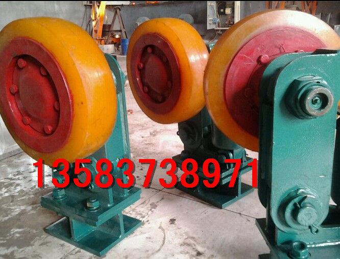 滾輪罐耳裝置 滾輪罐耳 罐耳滾輪導(dǎo)向裝置 L250滾輪罐耳 L300滾輪罐耳滾輪罐耳(又名滾輪導(dǎo)向裝置)是提升容器(罐籠或箕斗)的組成部分,它起導(dǎo)向和緩沖作用。是確保提升容器沿導(dǎo)軌平穩(wěn)運行的關(guān)鍵所在。一,主要機構(gòu)及特點:滾輪罐耳主要由輪軸、支架、緩沖裝置、底座等組成。二,主要特點:輪軸采用橡膠密封語機械密封相結(jié)合的組合密封方式,膠圈采用高耐磨材料,安全可靠,壽命長。1.支架擺動銷軸裝有高分子耐磨軸套,使用中不產(chǎn)生松動現(xiàn)象。2.緩沖裝置采用符合彈性體緩沖結(jié)構(gòu),性能穩(wěn)定,免維護。3.可用緩沖裝置來方便的調(diào)整滾輪與罐道間的位置。4.表面防范采用鍍鋅刷漆新工藝,防腐防銹性能好。三、其他說明滾輪罐耳由中間布置一個,左右側(cè)各一個組成一組滾輪罐耳可根據(jù)用戶要求進行設(shè)計