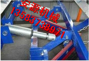 在正機安裝時,首先確定好安裝位置,將前吊桿焊在清掃器三角板上,再將橫粱焊在機架上,前吊桿調(diào)正螺絲頂在橫梁上,調(diào)正刮板與膠帶距離,后吊環(huán)角鐵焊在機架槽綱下面,吊著清掃器尾部,自動調(diào)正清掃器