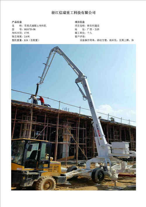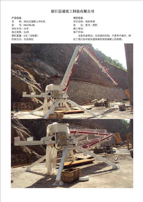 歸屬行業(yè):信瑞重工HG13A-3Z移動(dòng)式液壓混凝土布料機(jī)