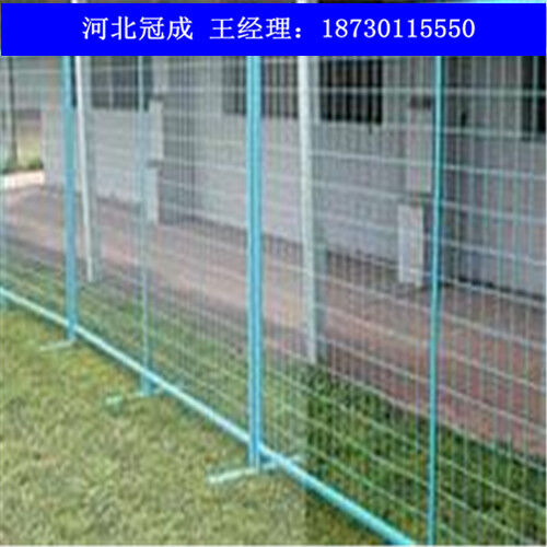臨時(shí)護(hù)欄網(wǎng),又可以稱為移動(dòng)圍欄,臨時(shí)隔離欄,移動(dòng)式安全圍欄網(wǎng)  臨時(shí)護(hù)欄分類臨時(shí)護(hù)欄從工藝上來看可以分為兩種:1.焊接網(wǎng)臨時(shí)護(hù)欄;2.編織網(wǎng)臨時(shí)護(hù)欄。 1.焊接網(wǎng)臨時(shí)護(hù)欄網(wǎng)  主要規(guī)格如下 絲徑:3.6-6mm 孔徑:50X200mm 75X150mm 80X160mm 100X200mm等 網(wǎng)片高度:1.0-2.0m 網(wǎng)片寬度:2.0-3.0m 立柱:方形柱 圓形柱 桃形柱 新型防盜柱 表面處理:熱度鋅、 浸塑、 噴塑、 噴砂、 靜電噴涂等。 顏色:以綠色為主(黃色,藍(lán)色等)  以上規(guī)格,顏色等也可根據(jù)客戶需要加工定做?! ?span>2.編織網(wǎng)臨時(shí)護(hù)欄  主要規(guī)格如下 絲徑:1.5-4mm  孔徑:50X50mm 60X60mm 70X70mm 等  網(wǎng)片規(guī)格:1mX2m 1.5mX2m 2mX2.5m 2mx3m等?! ×⒅悍叫沃?圓形柱  表面處理:PVC包塑 熱鍍鋅  顏色:主要以綠色,藍(lán)色為主?! ∫陨弦?guī)格可根據(jù)客戶需求加工定做?! ∨R時(shí)護(hù)欄網(wǎng)是適用臨時(shí)隔離,臨時(shí)隔斷,臨時(shí)圈圍,是靈活性極強(qiáng)的產(chǎn)品。  臨時(shí)護(hù)欄網(wǎng)主要采用可拆接構(gòu)件將護(hù)欄主片與底座或防護(hù)柱進(jìn)行標(biāo)準(zhǔn)連接,等特定需要的時(shí)候可輕松拆除,進(jìn)行移動(dòng)安裝。