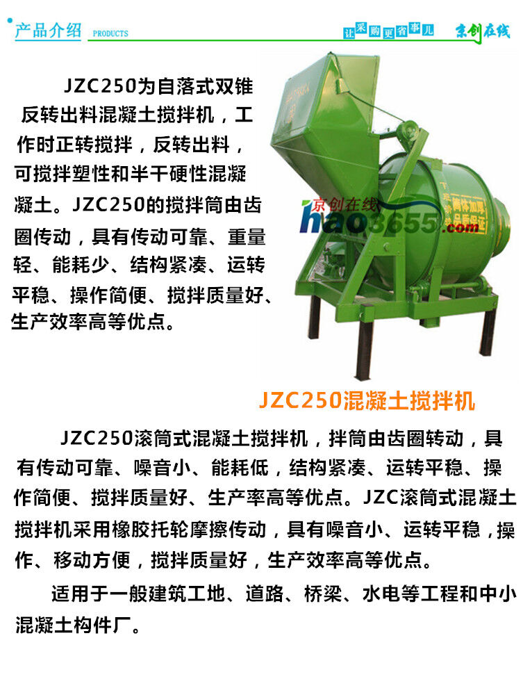 歸屬行業(yè):JZC250自落式雙錐反轉出料攪拌機
