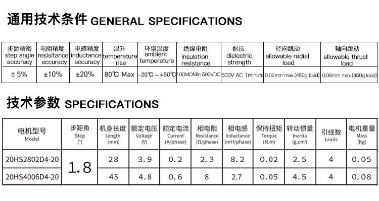 兩相1.8°混合式步進電機20系列步進電機