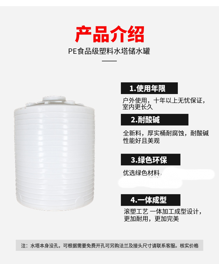常壓產(chǎn)品,不可施于超過常壓(1個(gè)大氣壓力)以上之正壓或負(fù)壓;若需攪拌或酸堿濃度比重在1.2以上時(shí),*好加裝補(bǔ)強(qiáng)套及加厚桶體壁厚為宜。此項(xiàng)特性尤其在盛裝容積超過10000L以上的桶體特需注意之。(硫酸、硝酸濃度超過28%一律使用特級(jí)產(chǎn)品并*好加裝補(bǔ)強(qiáng)套)