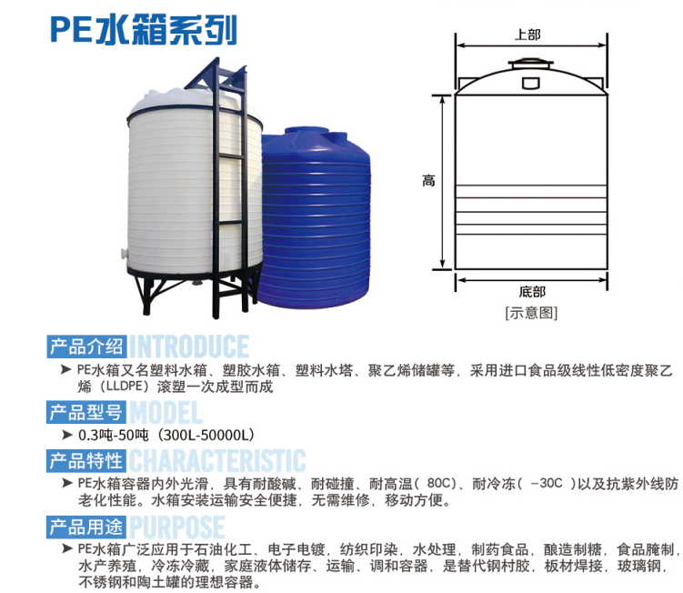 化工儲罐容器產(chǎn)品優(yōu)點:一次成型內(nèi)外光滑,具有良好的衛(wèi)生性與抗紫外線能力,耐撞擊、抗強震、不易老化、不長水藻、易清洗、防鼠、防白蟻、安裝移動方便。廣泛用于高層筑二次供水、蓄水、水處理凈化設備配套、電子行業(yè)、工業(yè)用冷卻水、化工制劑、化工原料、各種油品、飲品的存儲、運輸。這種塑料儲罐在生產(chǎn)中沒有使用任何添加劑、塑料填料,完全由本公司獨特配方改性增加聚乙烯(PE)材料加工制作而成,從儲罐罐體到進出料口、人孔、法蘭等都為整體一次成型無焊接縫,所以儲罐還具有無焊接縫、不滲漏、無毒性、重量輕、抗老化、抗沖擊、耐腐蝕、壽命長、符合衛(wèi)生標準等優(yōu)點,其價格低于不銹鋼儲罐、普通玻璃鋼儲罐、聚丙烯儲罐、聚氯乙烯貯罐,自然條件下的使用壽命更長。