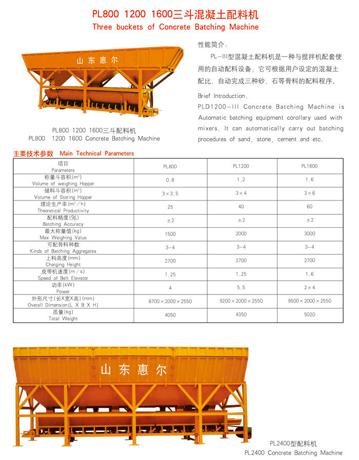 歸屬行業(yè):PL1200三斗混凝土配料機(jī)