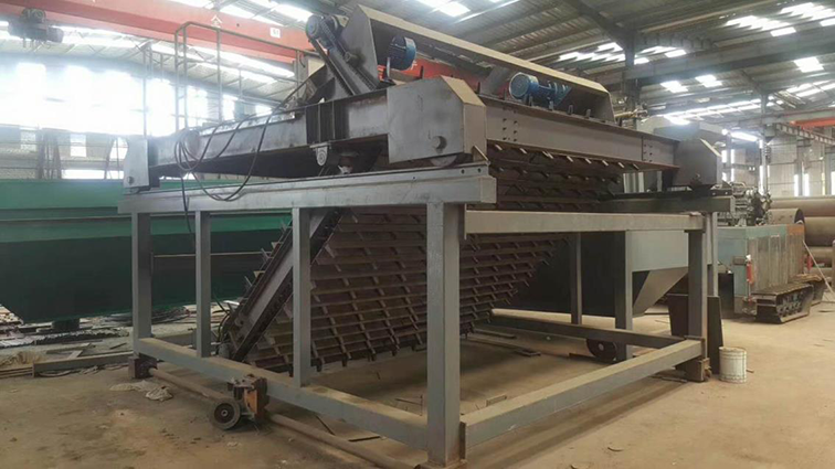 由操作工按下輸送按鈕啟動鏈板輸送機將料袋輸送出包裝位置,待叉車來把托盤運走。