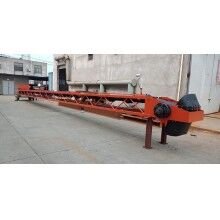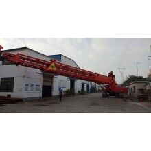 我公司生產(chǎn)的可移動式混凝土運(yùn)輸、澆筑設(shè)備——自行帶式混凝土布料機(jī),小時澆筑強(qiáng)度可達(dá)270m3。為了解決混凝土布料機(jī)的供料問題,自行研制了可移動式上料平臺。