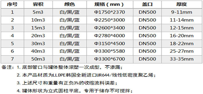 特點(diǎn):所用材質(zhì)為韓國進(jìn)口聚乙烯(PE)滾塑原料,儲(chǔ)罐一次成型,內(nèi)外光滑,具有良好的衛(wèi)生性與抗紫外線能力,耐酸堿、耐腐蝕、易清洗、不易老化。它可以盛裝在常溫下無機(jī)酸、堿、鹽等大部分物質(zhì)及有機(jī)物,耐熱耐凍 耐熱耐凍性佳,-5℃—+85℃均可使用