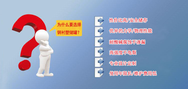 鋼襯塑儲(chǔ)罐由于其獨(dú)特的滾塑工藝、產(chǎn)品整體結(jié)構(gòu)和材料優(yōu)異性能,具有整體性好、強(qiáng)度高、無焊縫、不滲漏、抗沖擊、韌性好、重量輕、壽命長、耐酸堿、耐有機(jī)溶媒、符合衛(wèi)生標(biāo)準(zhǔn)、價(jià)格低廉、規(guī)格品種多等特點(diǎn)。尤其耐腐蝕、長壽命和大規(guī)格品種有非常大的優(yōu)勢,是貯存和運(yùn)輸各類化工液體半固體的理想產(chǎn)品。其性能大大超過了傳統(tǒng)的玻璃鋼、陶瓷、橡膠、焊接塑料等材料制作的防腐儲(chǔ)罐。