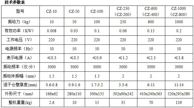 CZ600電磁倉壁振動器參數(shù)