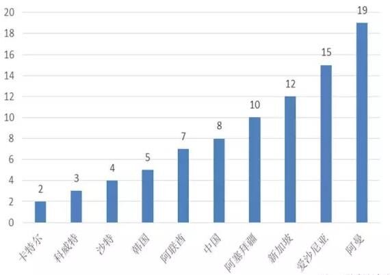 世界經(jīng)濟論壇發(fā)布的《2015-2016全球競爭力報告》,用法律和行政架構、基礎設施、宏觀經(jīng)濟環(huán)境、衛(wèi)生和基礎教育、高等教育和培訓、市場效率、勞動力市場效率、金融市場發(fā)展、技術、市場規(guī)模、商業(yè)環(huán)境完備性、創(chuàng)新12個指標對全球140個國家和地區(qū)的競爭力進行了評估,并對12個指標賦值加權后,得出各國的綜合競爭力排名?!耙粠б宦?/span>”沿線66個國家中,有53個國家的競爭力數(shù)據(jù)在此報告中體現(xiàn)(詳見附表2)。排名位于前70名(140個國家,70名為世界平均水平)的國家有35個,其中新加坡、日本、卡特爾、阿聯(lián)酋、馬來西亞、沙特、韓國、以色列、中國、愛沙尼亞的排名在“一帶一路”沿線國家中位于前10名,在全球的排名分別為第2名、第6名、第14名、第17名、第18名、第25名、第26名、第27、第28名、第30名;中國排名靠前的主要因是宏觀經(jīng)濟環(huán)境良好、市場規(guī)模大,其余10個指標排名均在30名以后;位于后70名的國家31個,其中阿爾巴尼亞、塞爾維亞、尼泊爾、黎巴嫩、不丹、孟加拉國、波黑、埃及、巴基斯坦、緬甸的排名在“一帶一路”沿線國家中位于后10名,在全球的排名分別為第93名、第94名、第100名、第101名、第105名、第107名、第111名、第116名、第126名、第131名。總體上看,“一帶一路”沿線國家競爭力在全球排名分布比較靠后,整體競爭力能力有待提升。